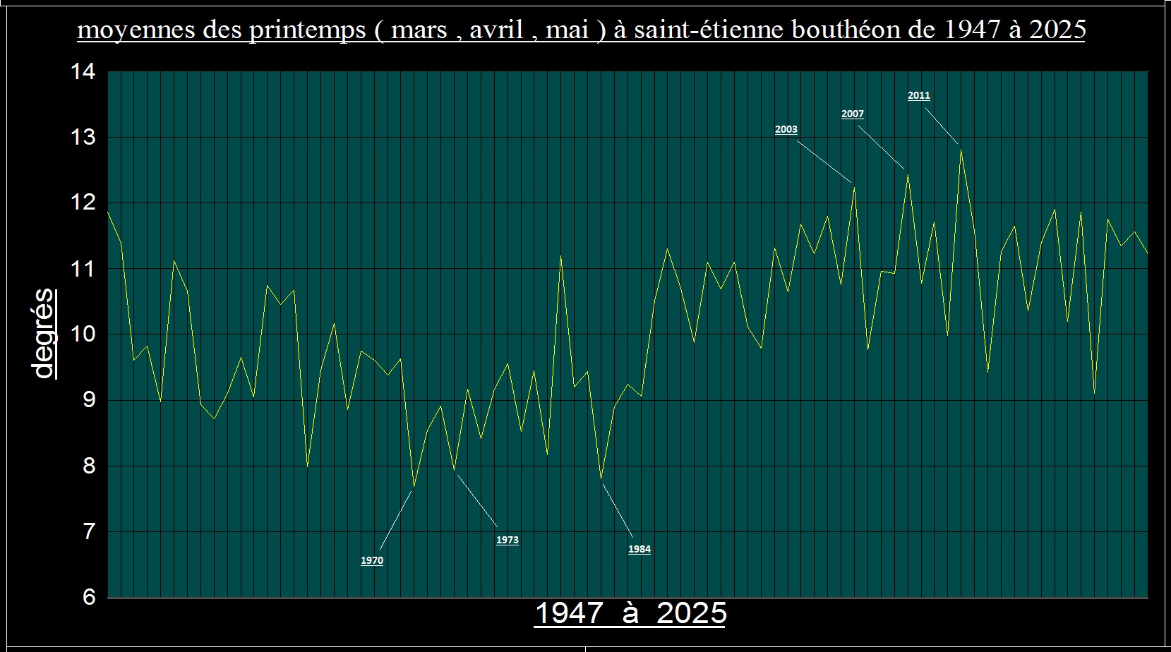 Les printemps 1947 à 2025 |